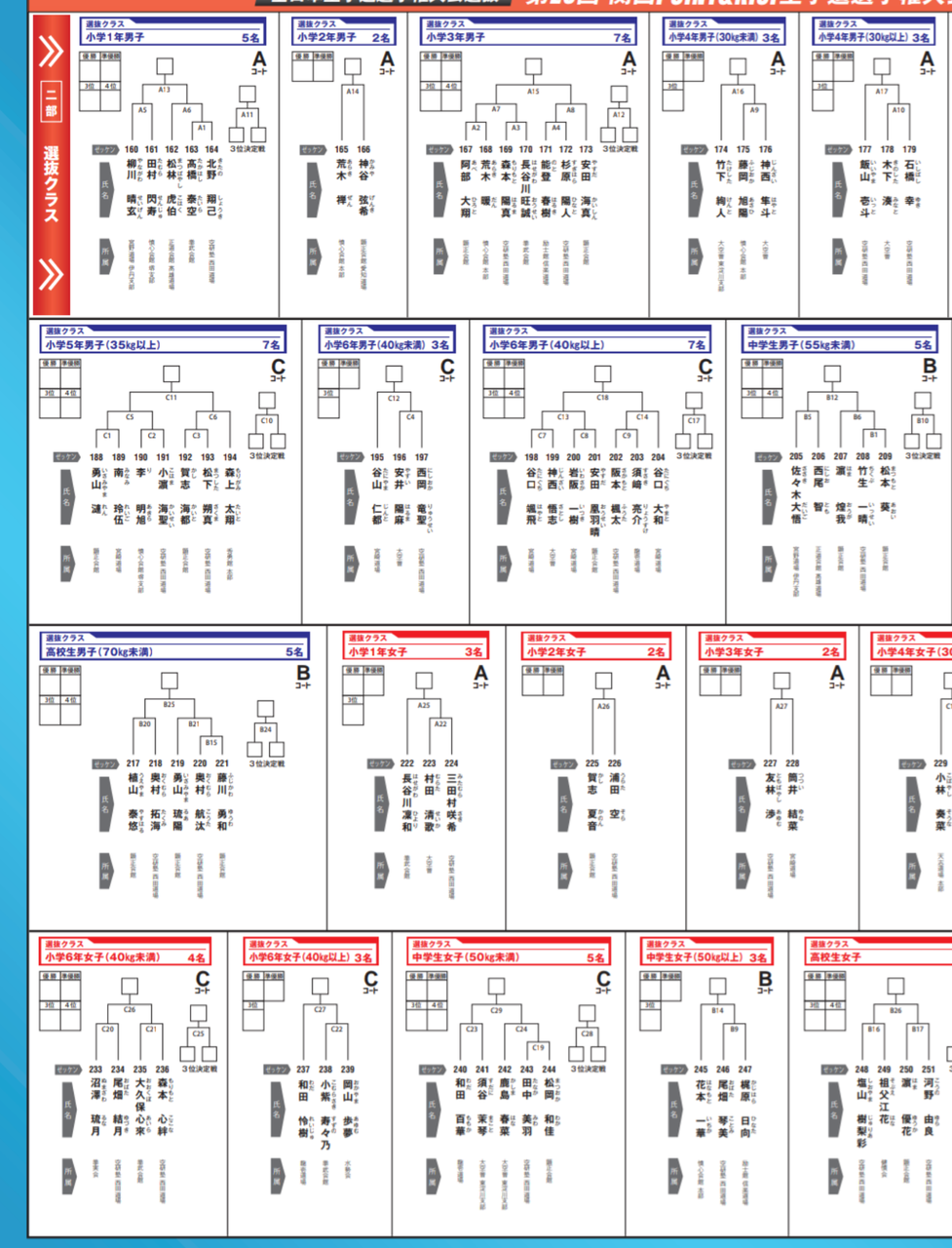 選抜クラスの決勝戦と、一般上級クラスの決勝戦のみ5審。それ以外は3審になります。